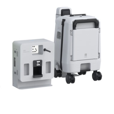 Mobile „Workstation“ mit tragbarer Wasserladestation, die schnelles Nachfüllen von Wasser unterstützt